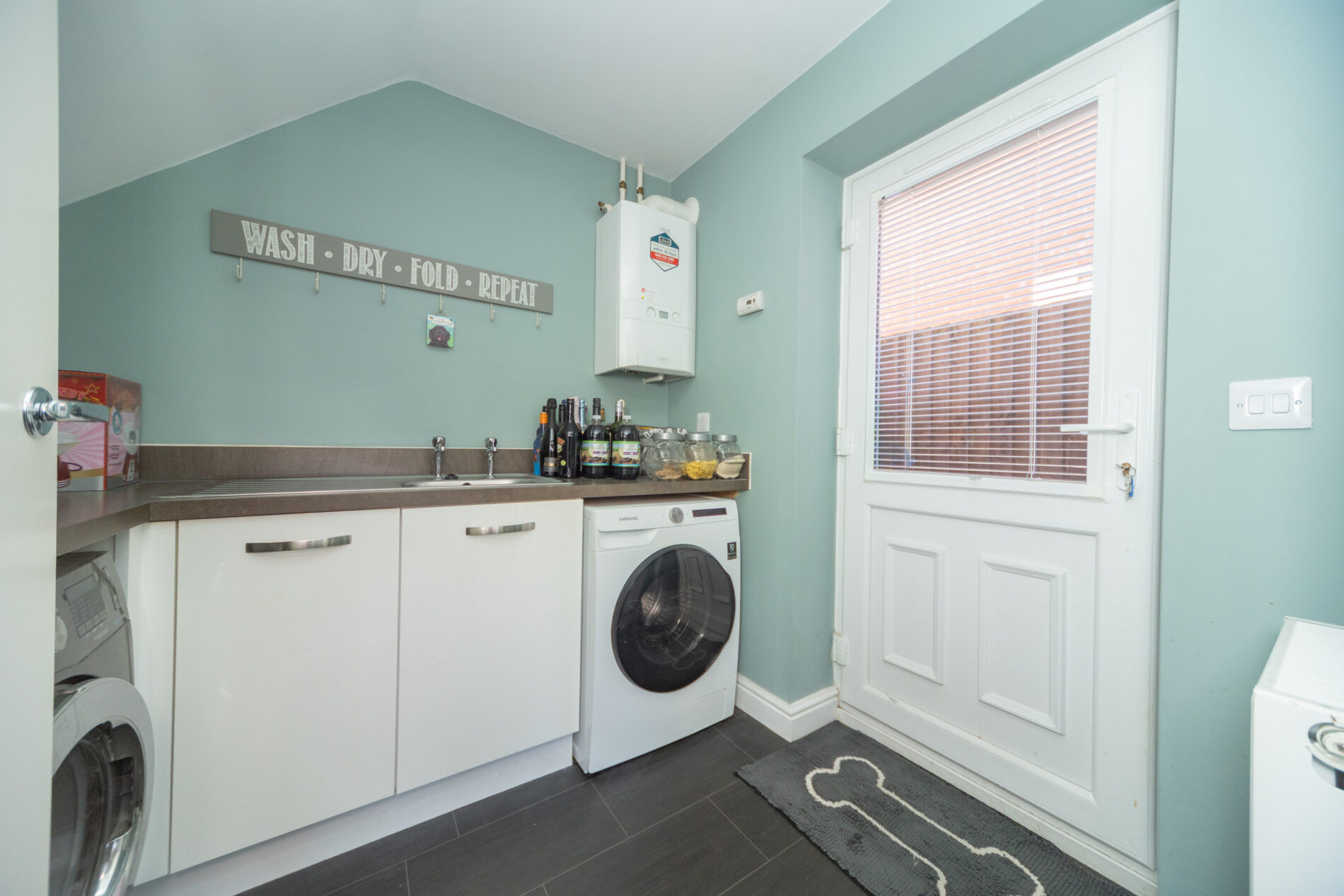 Fitted to complement the kitchen and with wall mounted boiler, space for washing machine and tumble dryer, radiator, ceiling light and Upvc door to the rear elevation leading out to the garden via a passageway.