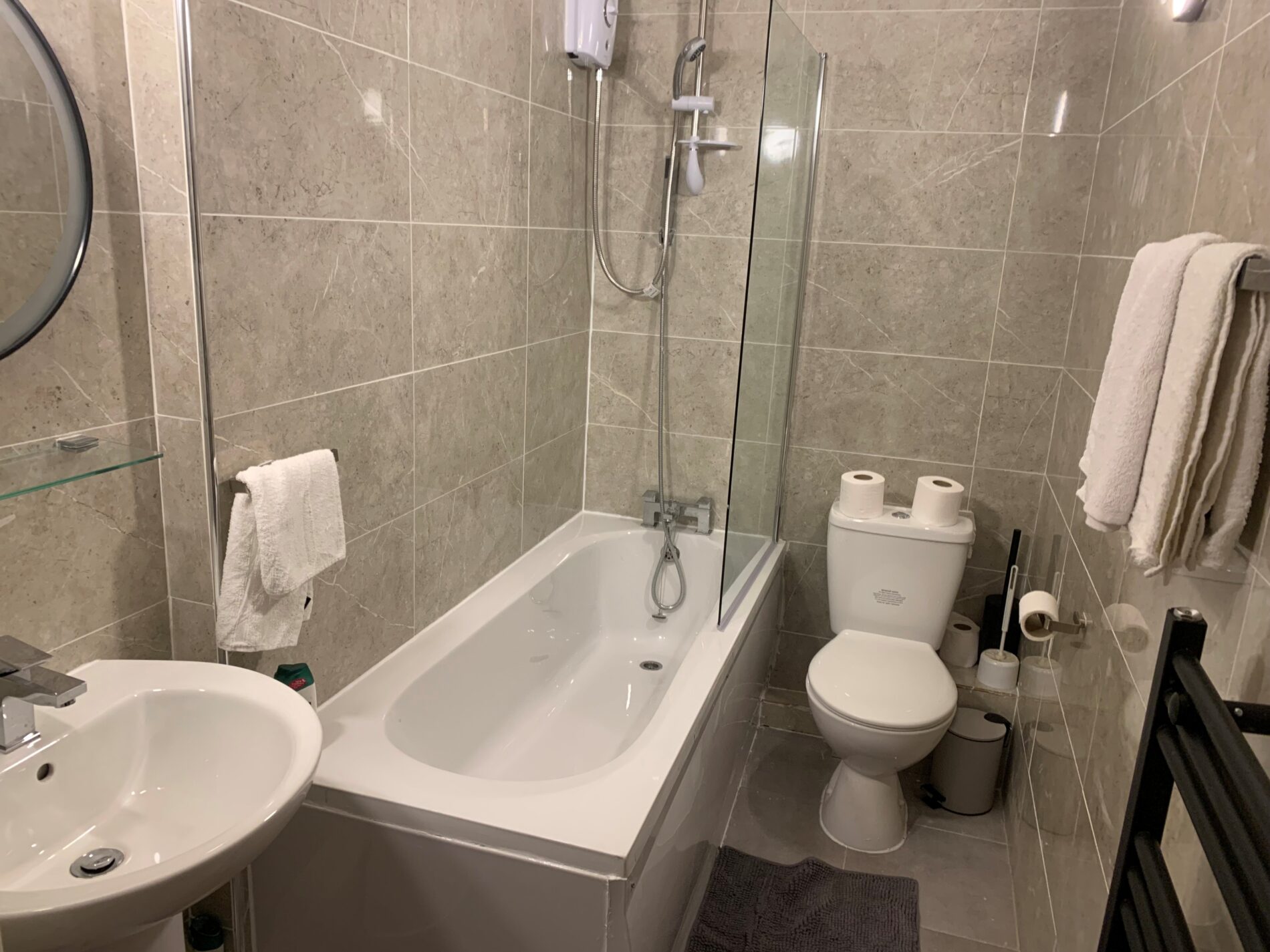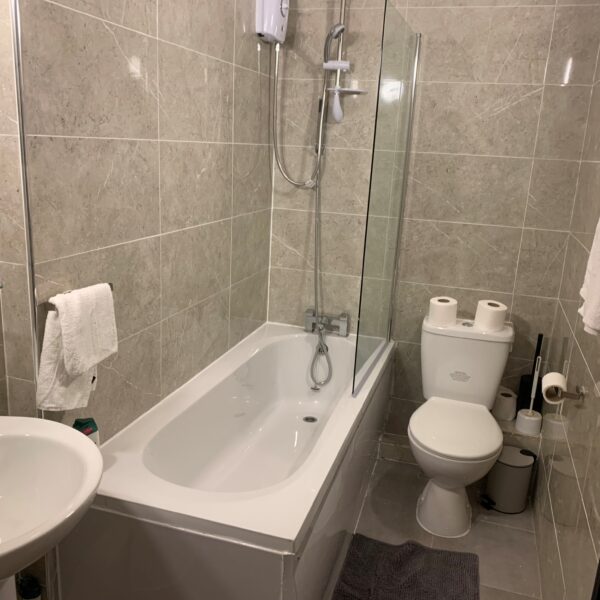 There is a double bedroom and a bathroom with three piece suite and shower over the bath.
