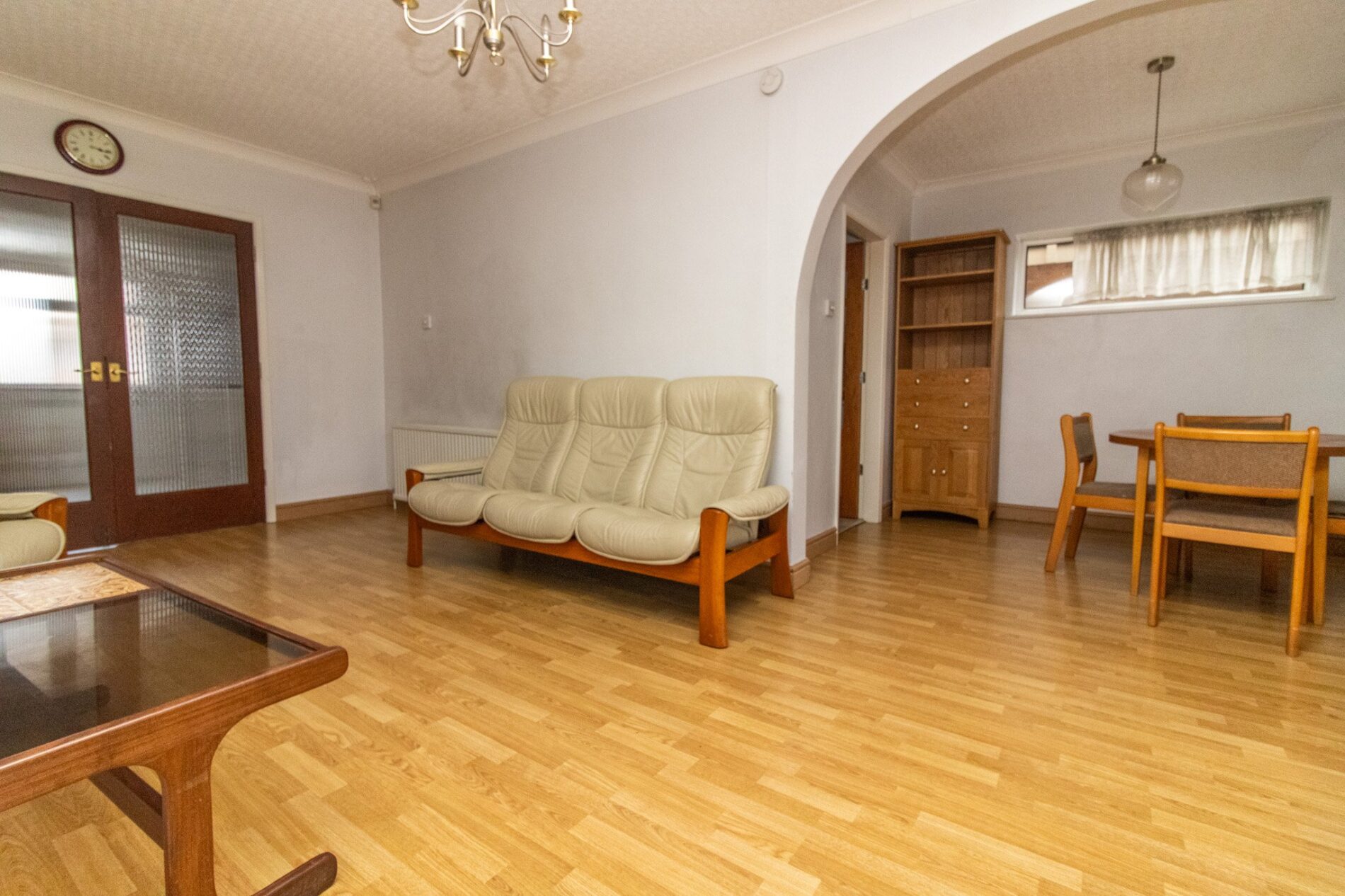 19' 5" x 10' 6" (5.92m x 3.20m) Coal effect gas fire set in feature display surround, radiator, TV point, UPVC sealed double glazed window, seled double glazed sliding patio door to sitting room, archway leading to;