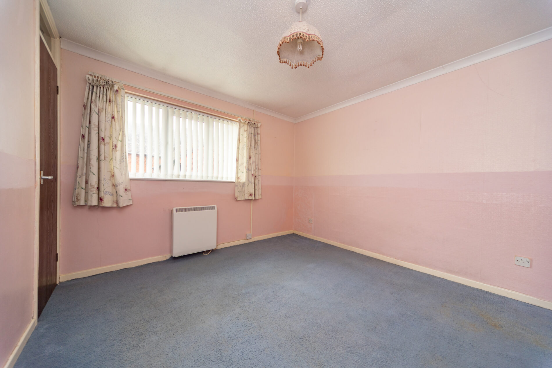 With ceiling light point, built in wardrobe for storage, electric heater and Upvc double glazed window to the property's rear elevation,