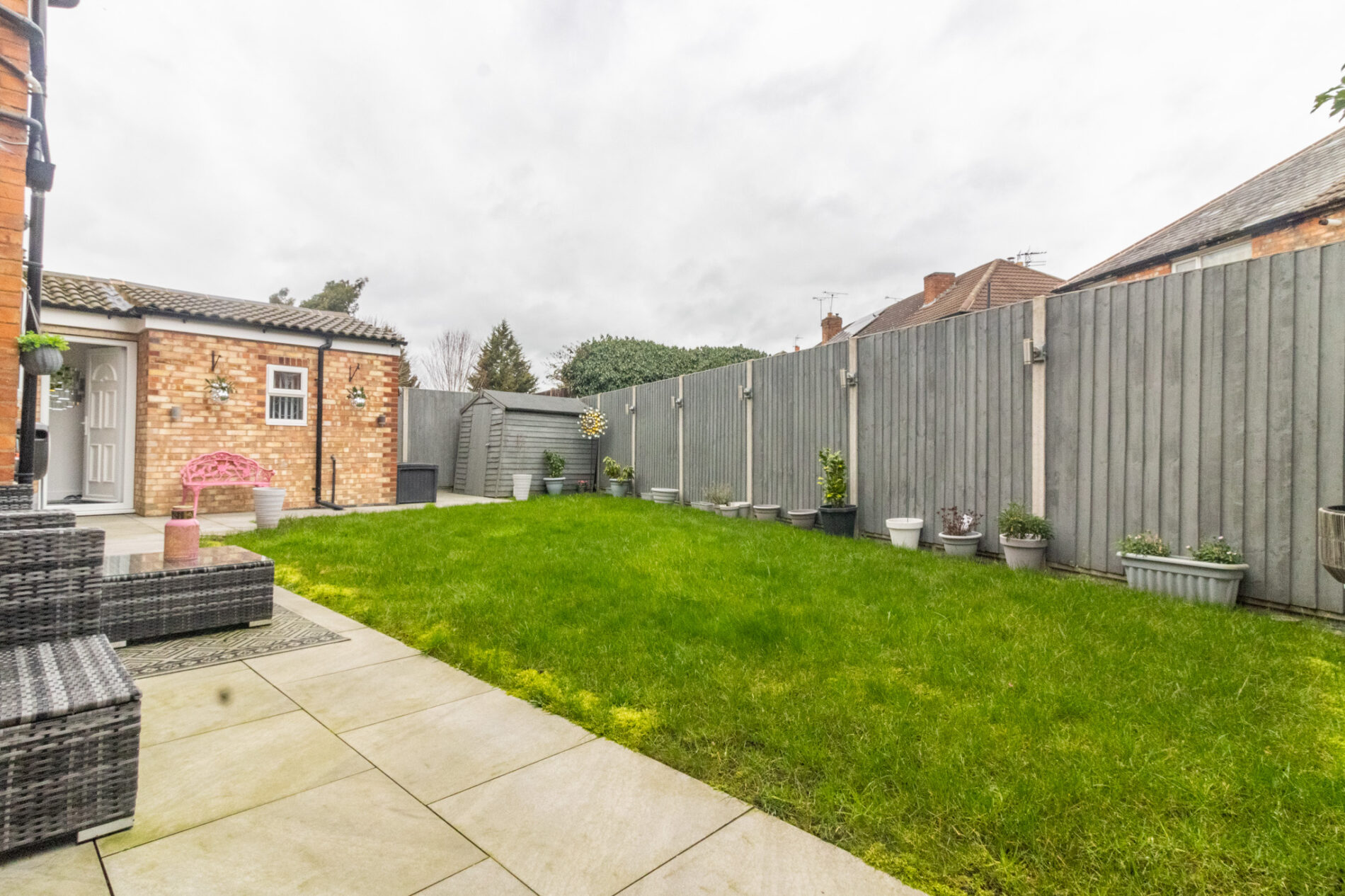 Block paved parking to front. Enclosed patio and lawns to rear with side covered pathway leading to gated access to front aspect.