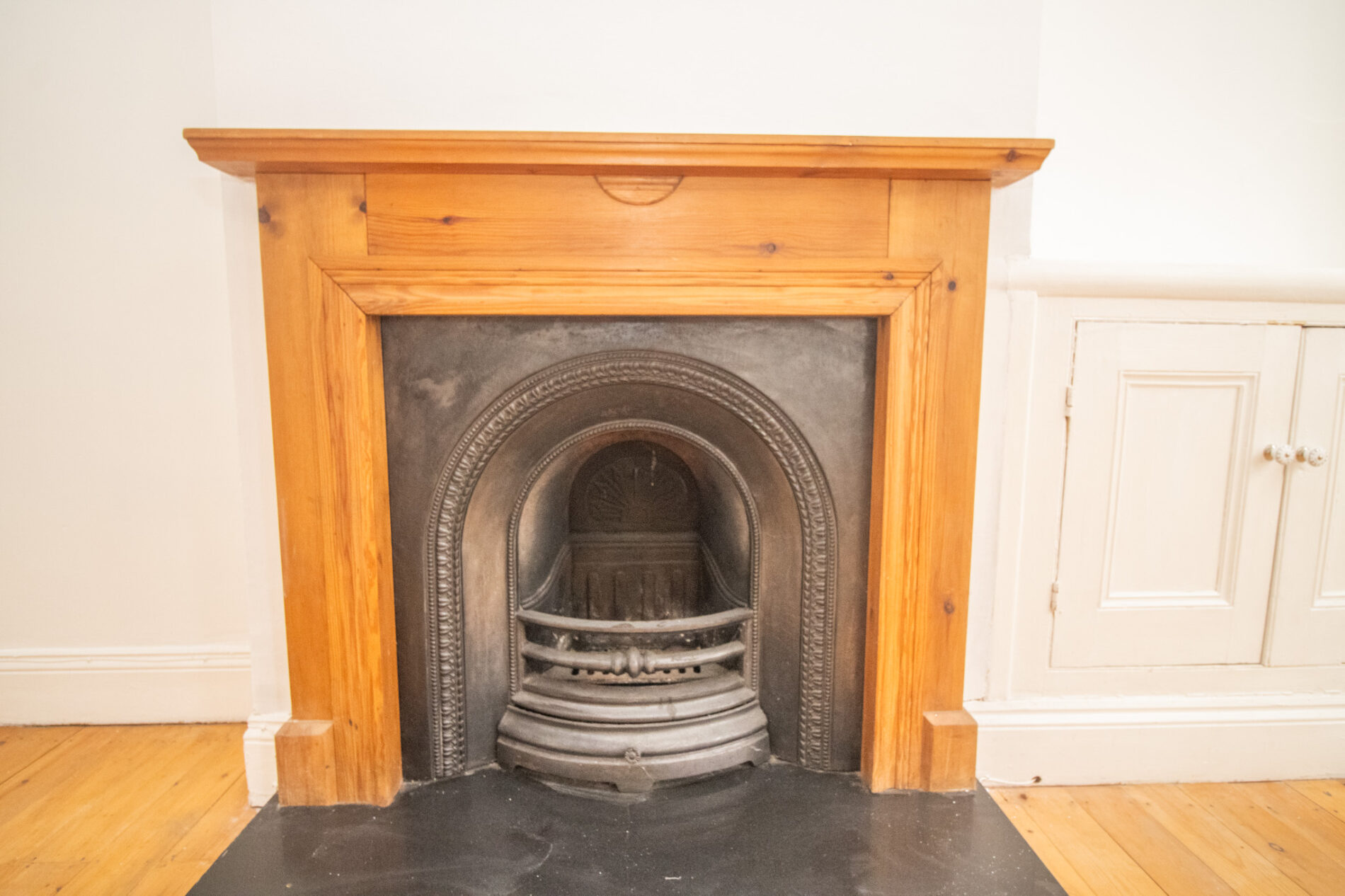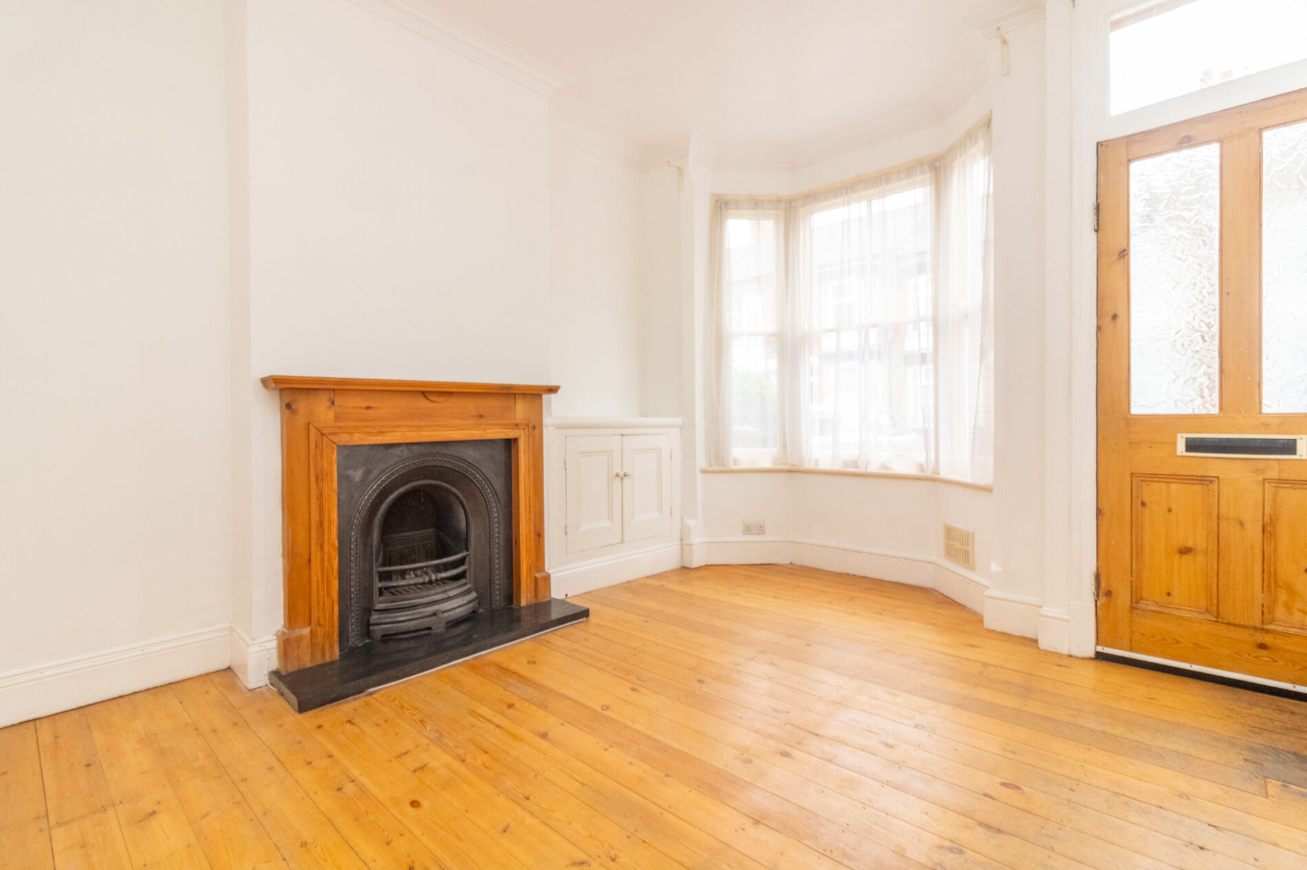 Radiator, sash bay window to front aspect, stripped paneled flooring, feature cast iron and hardwood fire surround.