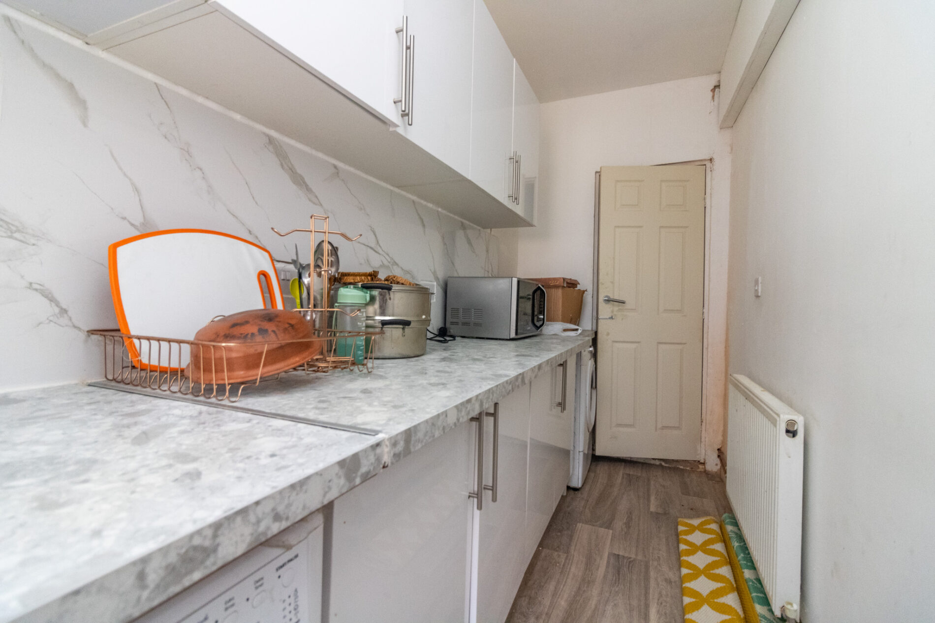 Radiator, UPVC sealed double glazed window, over stairs cupboard