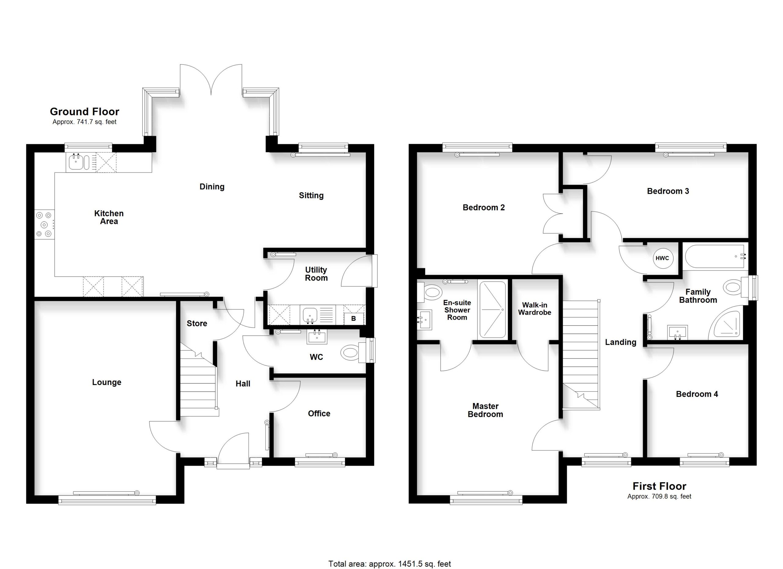 SPECIAL OFFER - Flooring included AND stamp duty paid! WORTH £14497! An impressive, open-plan living kitchen with seating and dining areas plus box bay and French doors opening out to the rear garden is the focal point of The Severn, a four-bedroom family home perfect for a growing family. Downstairs you will find a good sized lounge, utility room and cloakroom/WC plus a study which is the ideal space for a home office. Up the stairs to the spacious first floor landing and you’ll find four bedrooms with principal en-suite shower room and the remaining three rooms sharing a modern family bathroom with bathtub and separate shower. Outside there is a turfed garden to the rear, driveway and a single garage.