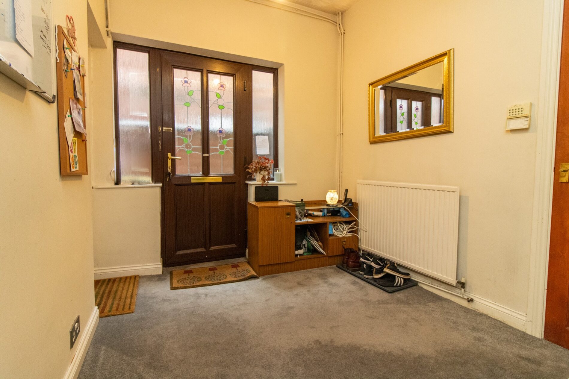 9' 10" x 7' 10" (3.00m x 2.39m) Radiator, wood stained style UPVC sealed double glazed side panels to front door.