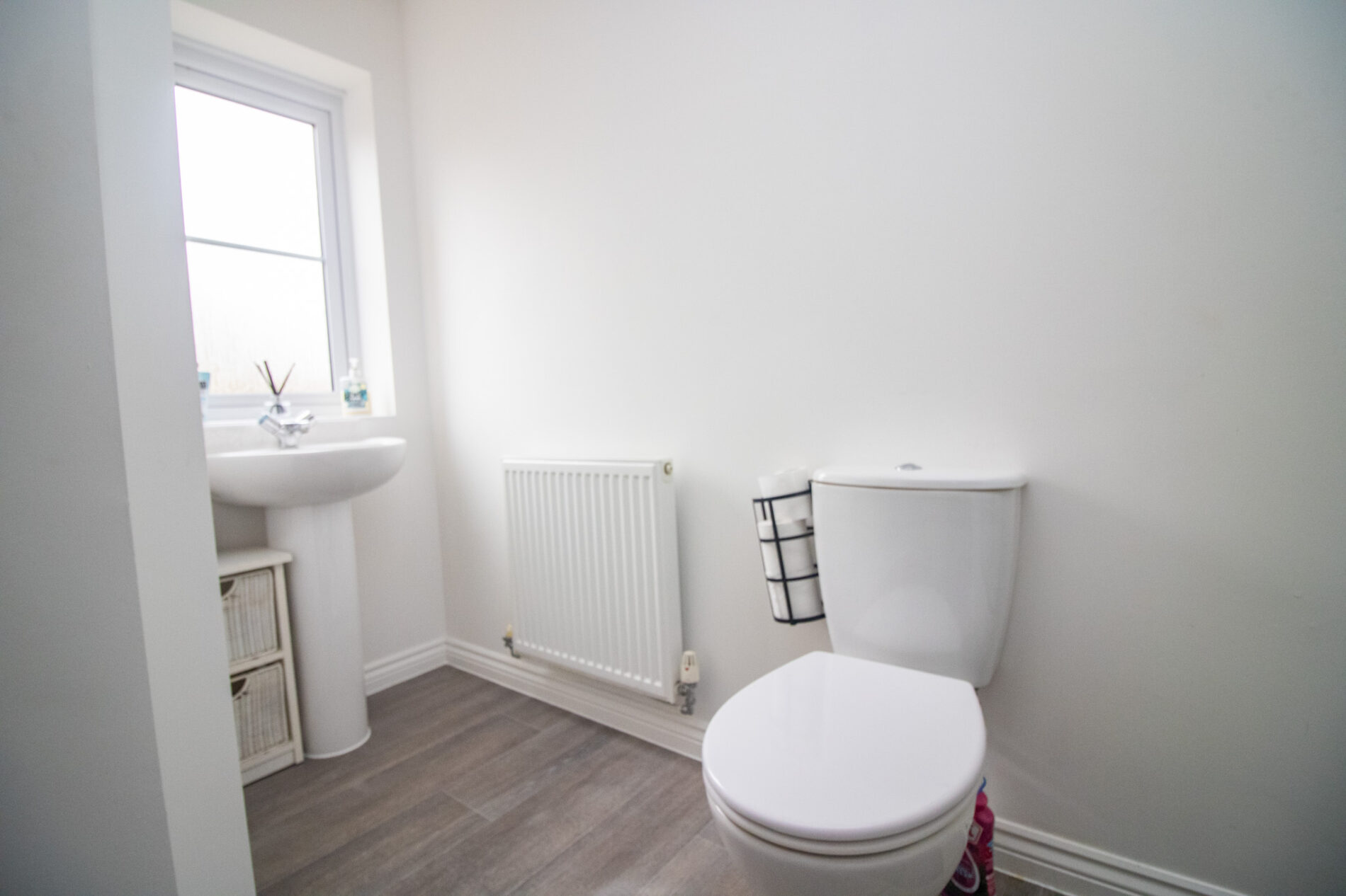 Low level WC and wash hand basin, radiator.