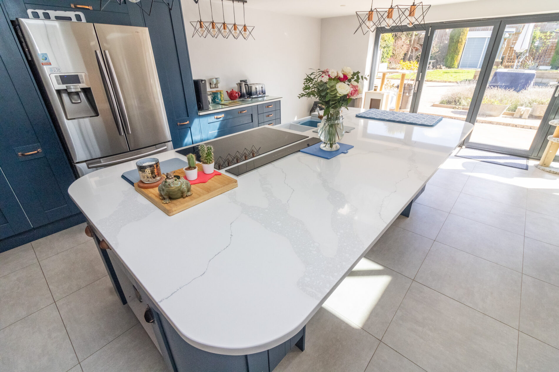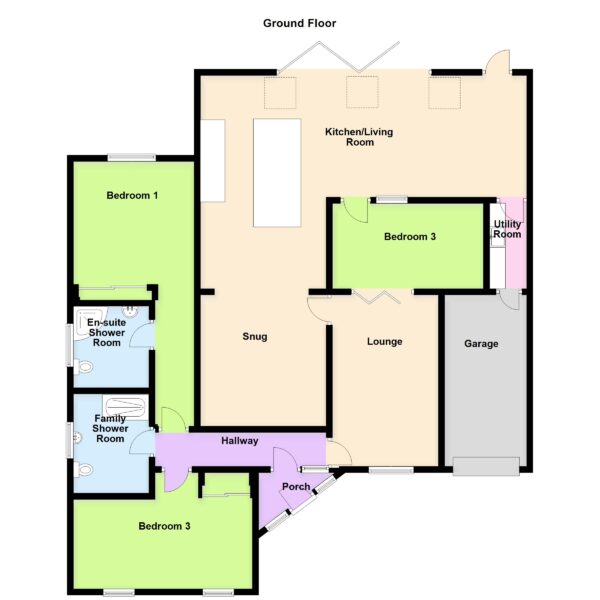 Fitted in an extensive range of soft close units comprising Granite work surfaces with deep pan drawers and cupboards under, complementary wall mounted eye level cupboards, built in gas and electric cookers, pull out larder cupboards, large fridge/freezer space, feature Granite surface Island with inset sink unit and Granite drainer, with mixer tap over, and five piece ceramic hob with downdraft cooker hood, curved cupboards and drawers below, integrated dishwasher, breakfast bar, spotlights, bi fold doors leading to gardens, large dining and seating area, vertical designer radiator, large tiled flooring, 3 Velux sky lights providing natural light, 2 of which open to provide fresh air circulation with electric opening.. UPVC sealed double glazed door leading to outside pet enclosure.
