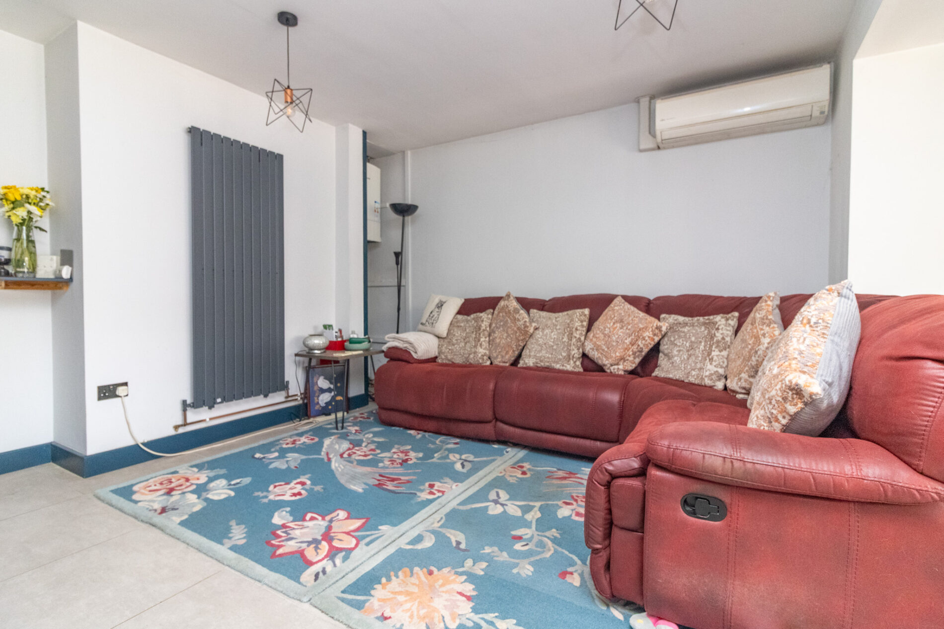 Double radiator, UPVC sealed double glazed window, solid fuel burner set in exposed brick chimney breast with raised stone tiled hearth, bi-fold doors.