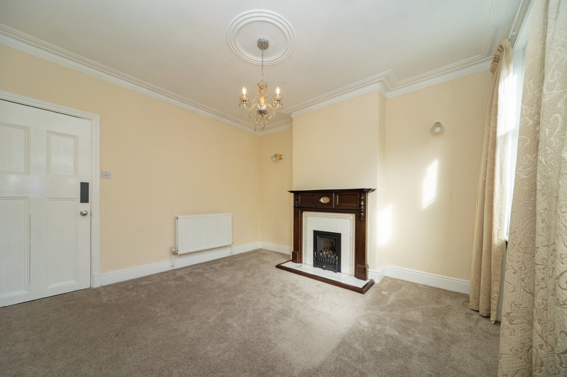 3.70m x 3.70m (12' 2" x 12' 2") With feature fireplace and gas fire, radiator, ceiling and wall lights, ceiling rose and cornice, door and two Upvc windows to the front elevation and internal door to: