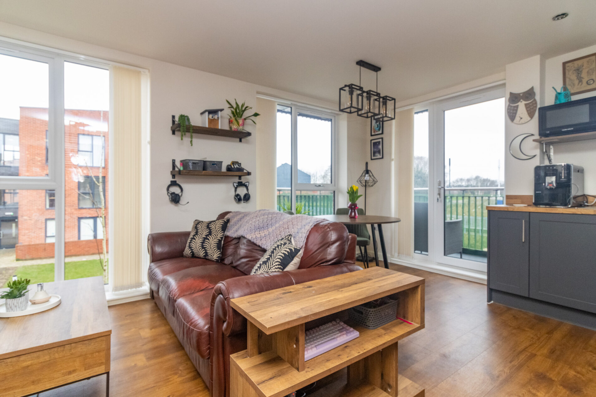 Presenting a superb opportunity to acquire a stylish two bedroom first floor apartment, ideally situated within walking distance of the vibrant Highcross Centre. This well presented flat is perfectly suited for first time buyers or investors seeking a modern and convenient lifestyle. The property features an entrance hall leading to an impressive open plan living area, which is enhanced by dual aspect views that flood the space with natural light. The contemporary kitchen area is equipped with integrated appliances (including oven, hob, fridge freezer and dishwasher), providing a seamless and practical cooking environment. Double doors open from the living space onto a generous wrap around duel aspect balcony that enjoys picturesque views over the River Soar, creating an inviting setting for relaxation or entertaining guests. Both bedrooms are serviced by a modern shower room . Additional benefits include allocated parking for one vehicle, secure entry system, and efficient gas heating and double glazing throughout the apartment. Residents will appreciate the ease of access to the city’s extensive amenities, including shops, restaurants, cafes and leisure facilities, all within a short stroll. With its combination of contemporary features, comfortable living spaces and a sought after riverside outlook, this apartment represents an exceptional opportunity for those looking to enjoy city living in a desirable setting.