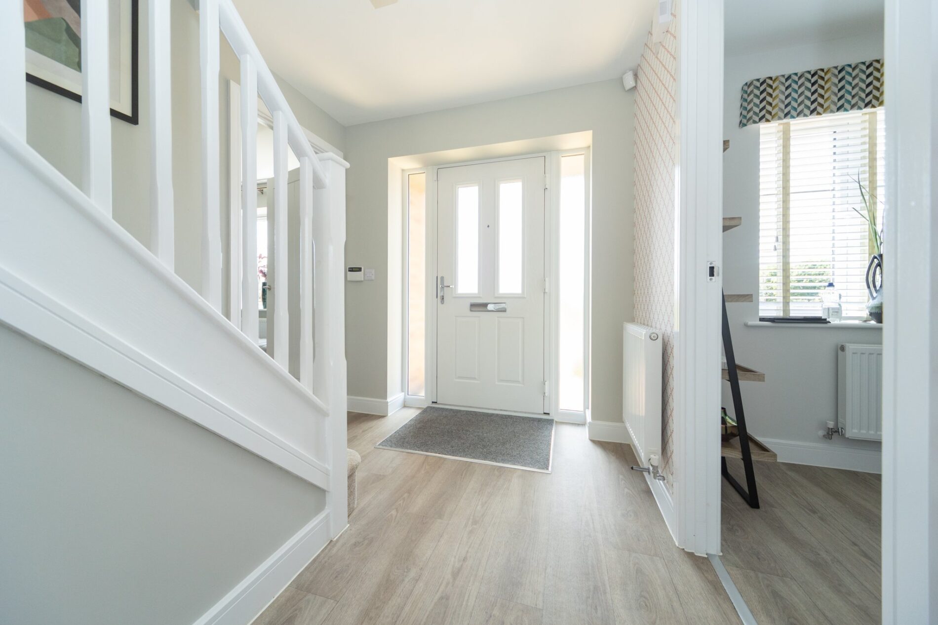 3.87m x 2.20m (12' 8" x 7' 3") With stairs to the first floor and useful under-stairs storage, ceiling lighting, radiator and composite door with Upvc side screens to the front elevation.