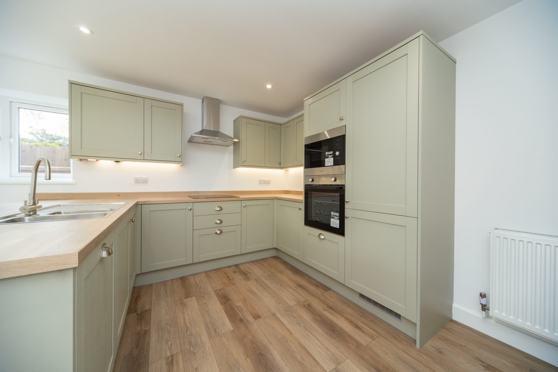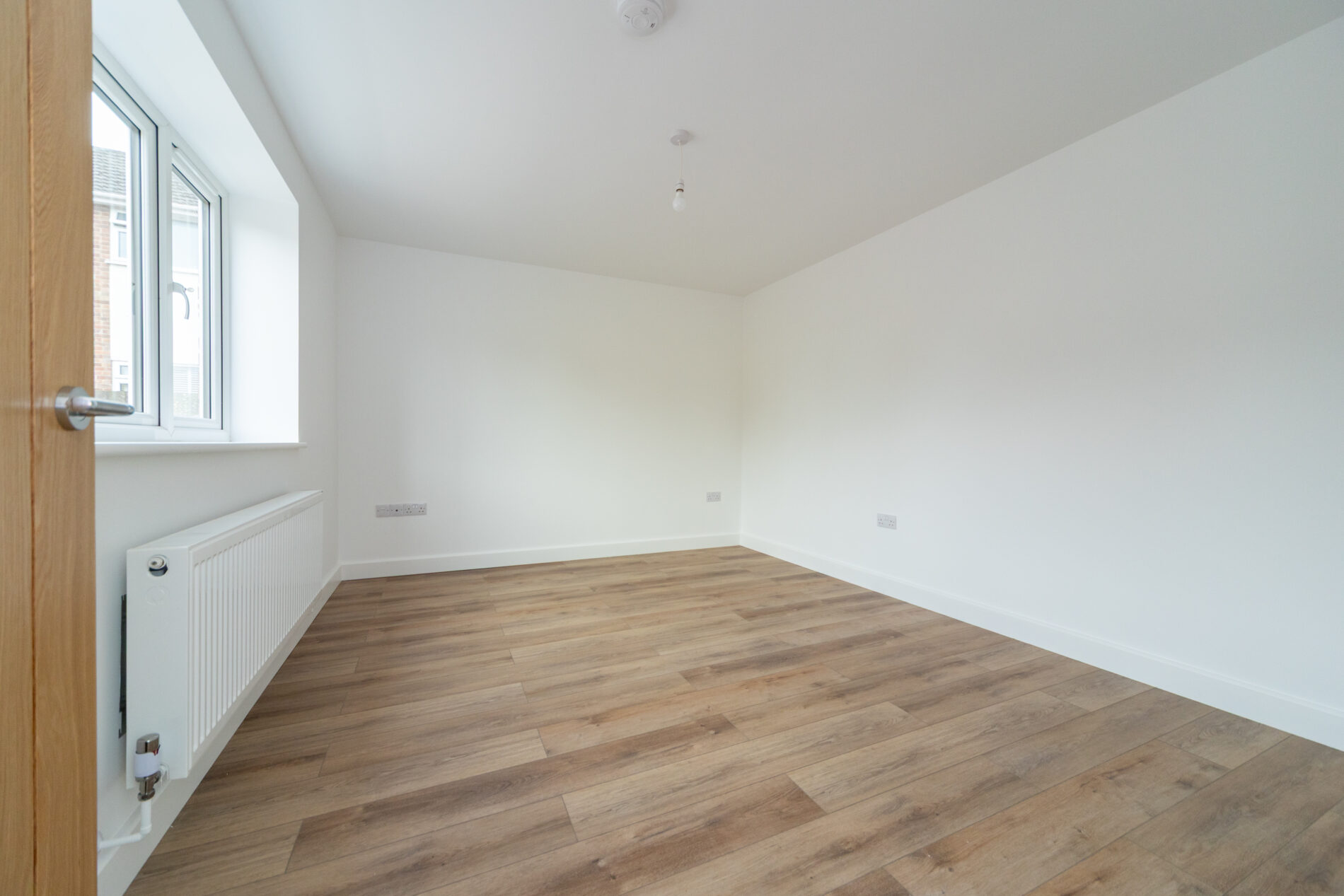 With composite door to the front elevation, ceiling lighting, radiator and double width built-in storage, oak doors lead off to all rooms and a large hatch with folding timber loft ladder leads to the full length loft space which has lighting, power and partial boarding with measurements of 8.83m x 4.67m plus eaves.