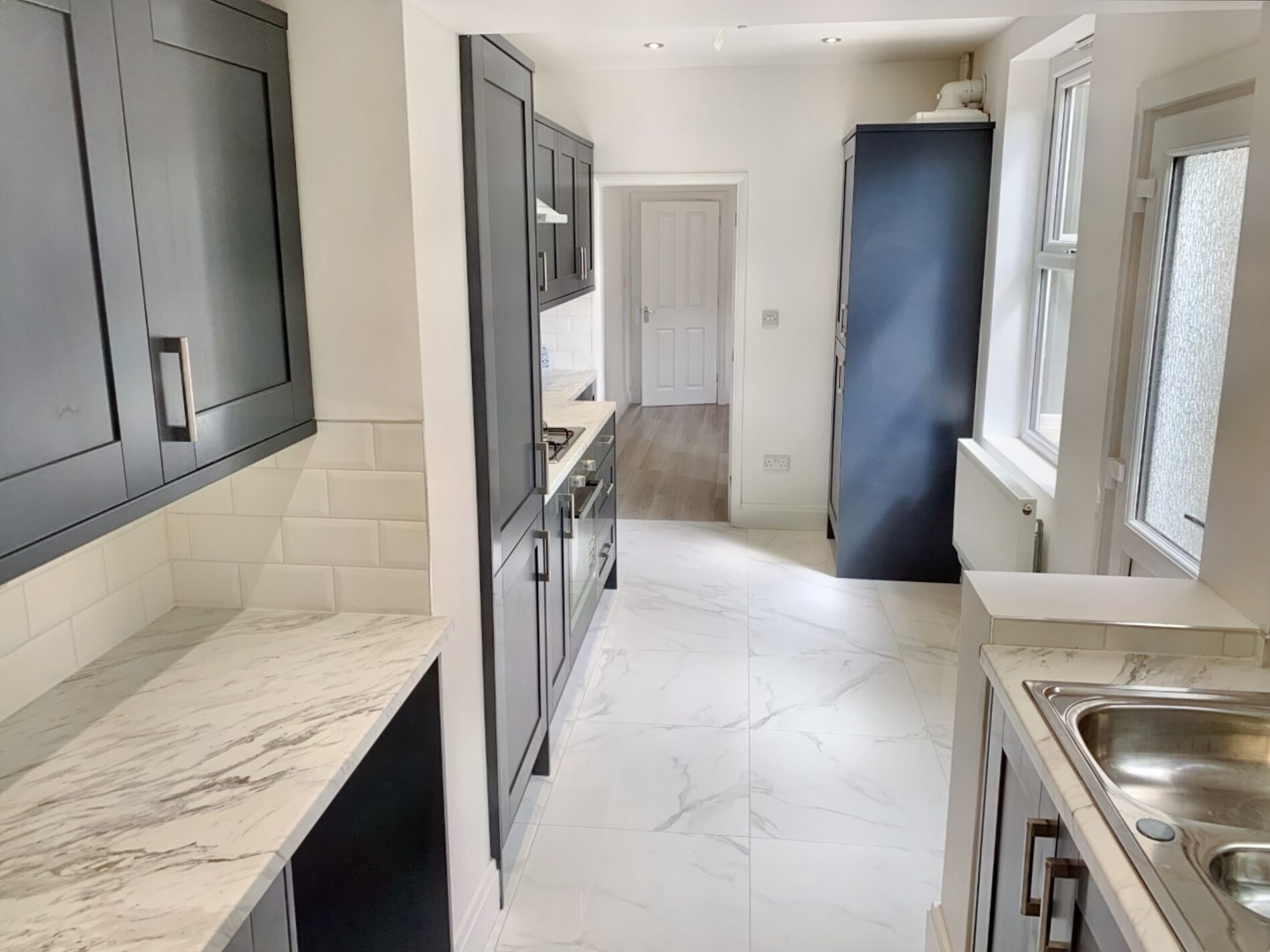 A three bedroomed, stunning, mid terraced property located within the “West End” of Leicester. This modern property has gas central heating with combination boiler and pvc double glazing. The accommodation comprises of entrance hall, front reception room with bay window and new laminate flooring and rear reception room with large store cupboard off and laminate flooring. There is a re-fitted kitchen with contemporary wall and base units, tiled floor, built in oven, hob and extractor and a ground floor shower room/wc with corner shower enclosure and heated towel rail. Stairs and landing lead to bedroom one at the front with decorative fireplace and walk in wardrobe/ dressing room off, there is a second bedroom to the rear with decorative fireplace and a family bathroom with new suite with rain water shower over the bath, tiled floor and useful storage. A fixed staircase leads to bedroom three with roof windows to front and rear. Outside there is a small garden to the front and an enclosed garden to the rear. EPC Band E, Council Tax Band A.