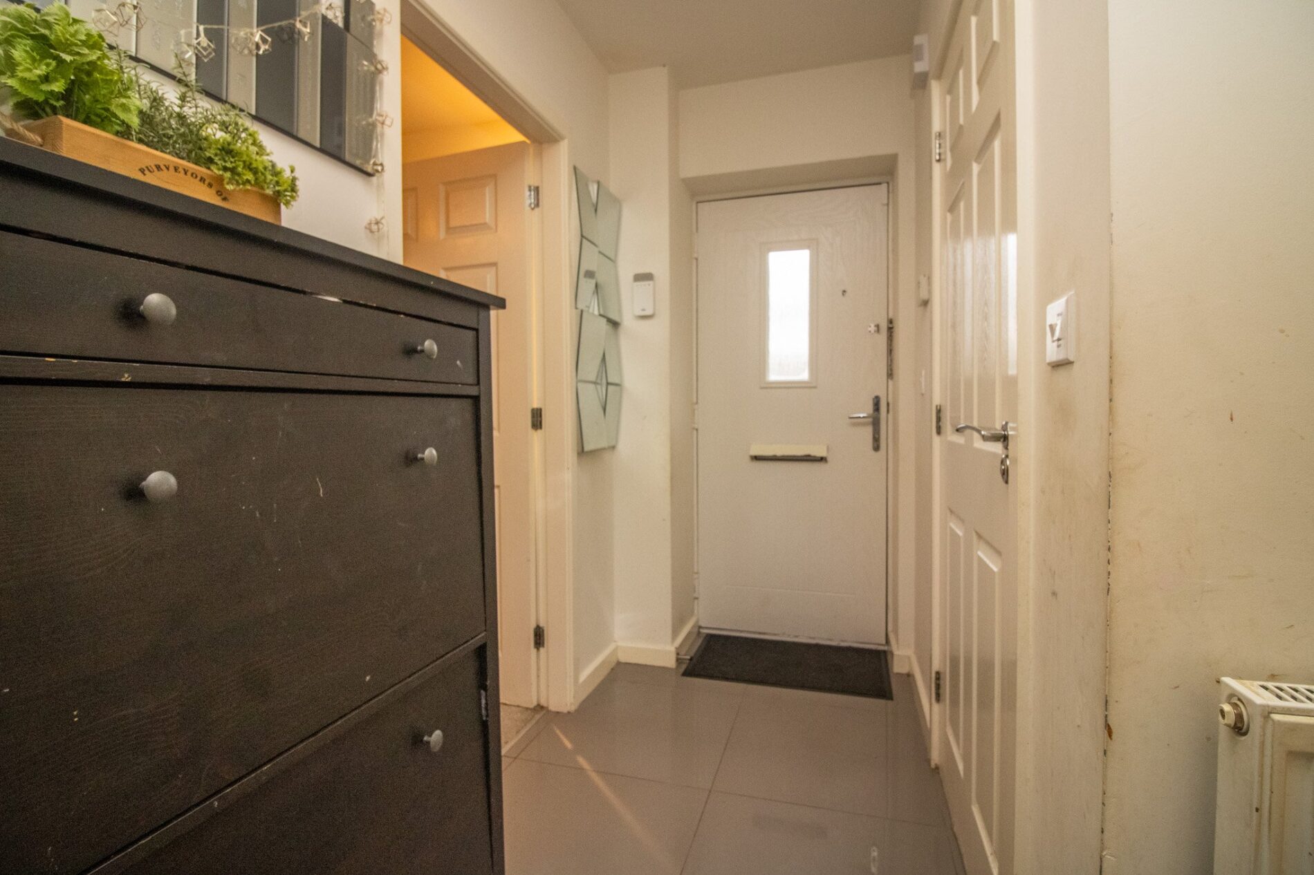 Underfloor heating, tiled flooring, understairs storage cupboard, stairs leading to first floor accommodation.