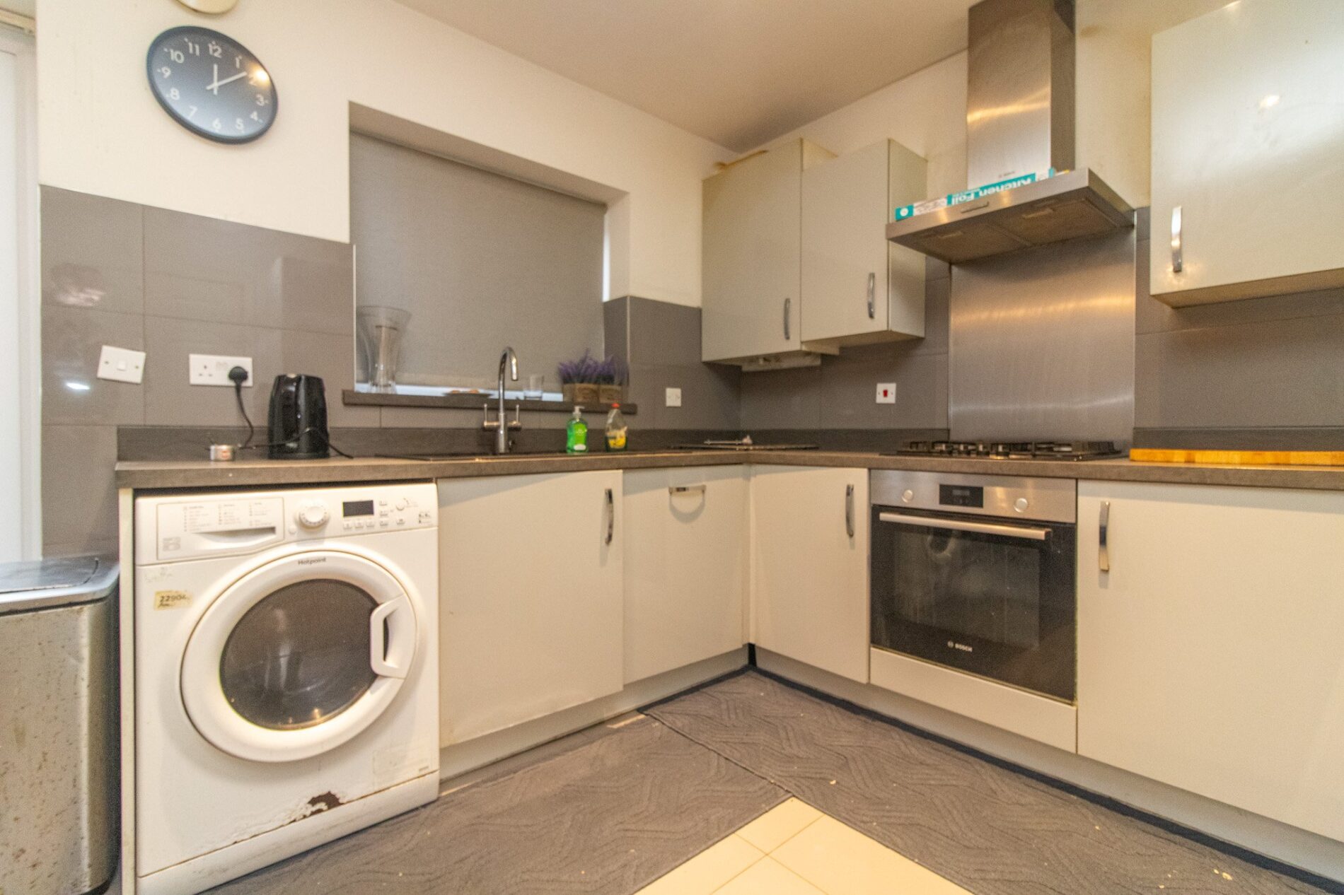 15' 5" x 9' 2" (4.70m x 2.79m) Comprising one and a half bowl sink unit with cupboards under, matching range of base units with work surfaces over, drawers and cupboards under, complementary wall mounted eye level cupboards, integrated dishwasher and fridge/freezer, built in oven and four piece gas hob with extractor fan over set in stainless steel hood with matching splash back, duel aspect UPVC sealed double glazed windows, underfloor heating, tiled splash backs, spotlights.