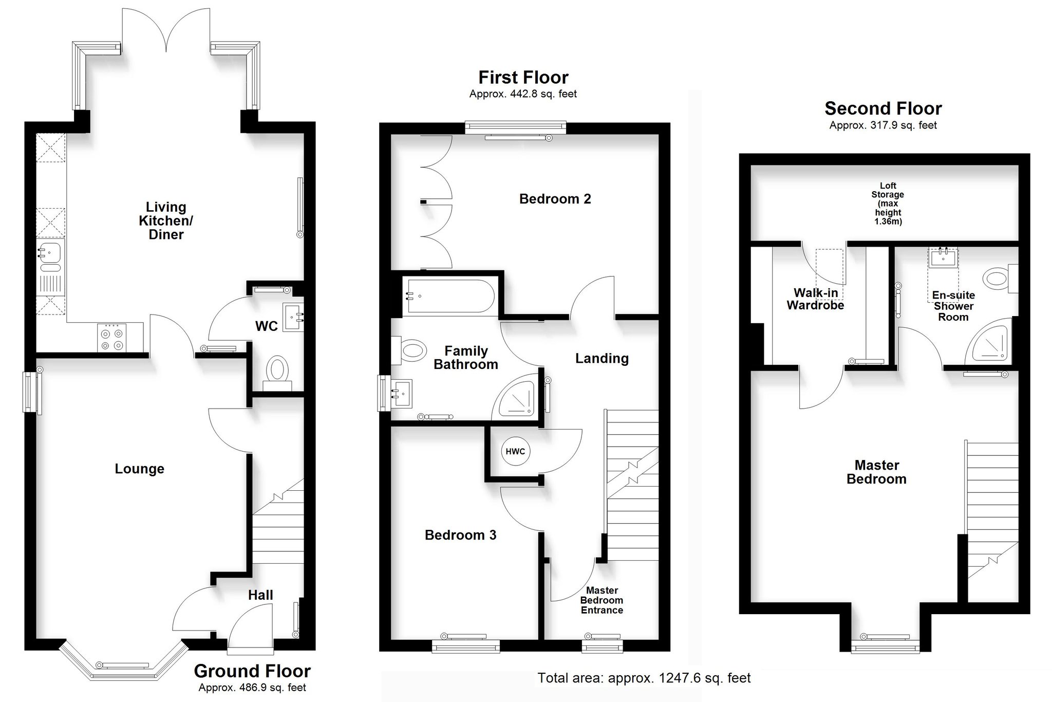£5000 TOWARD STAMP DUTY & FLOORING INCLUDED! Plot 34: The Cherington, an impressive 3-bedroom home fantastic living space spread across three floors. On the ground floor you’ll find a spacious lounge and a separate open-plan kitchen and dining area with French doors providing attractive views of the garden. In summer, you can throw the doors open and step outside for that family BBQ or a spot of al fresco dining. Up the stairs are bedrooms two and three, which share a large family bathroom with shower and bathtub. The principle bedroom has the prime space on the second floor and features a large walk-in wardrobe and en-suite shower room. Outside a driveway provides private parking leading to the single garage and garden beyond.