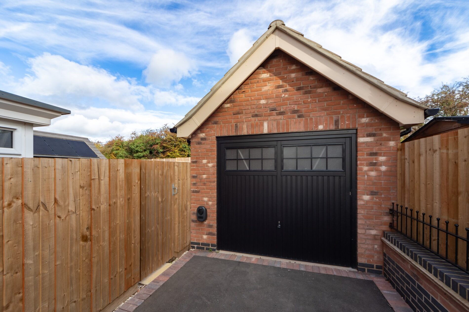 The property is set back from the road behind a landscaped front garden with the driveway and garage situated to the left side of the house giving access to the rear garden thereoff.