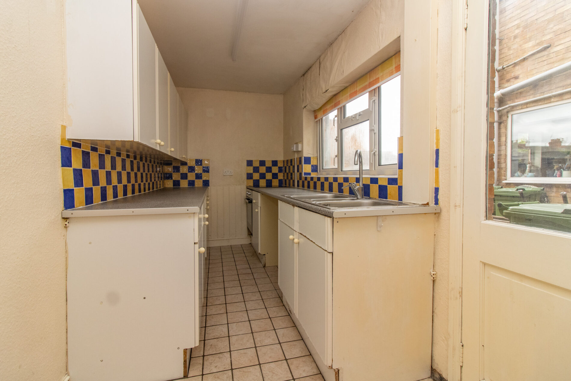 Comprising sink unit with cupboard under, matching range of base units with work surfaces over, drawers and cupboards under, complimentary wall mounted eye level cupboards, built in cooker and four piece ceramic hob, UPVC sealed double glazed window, door to rear garden, tiled splash backs, tiled flooring.