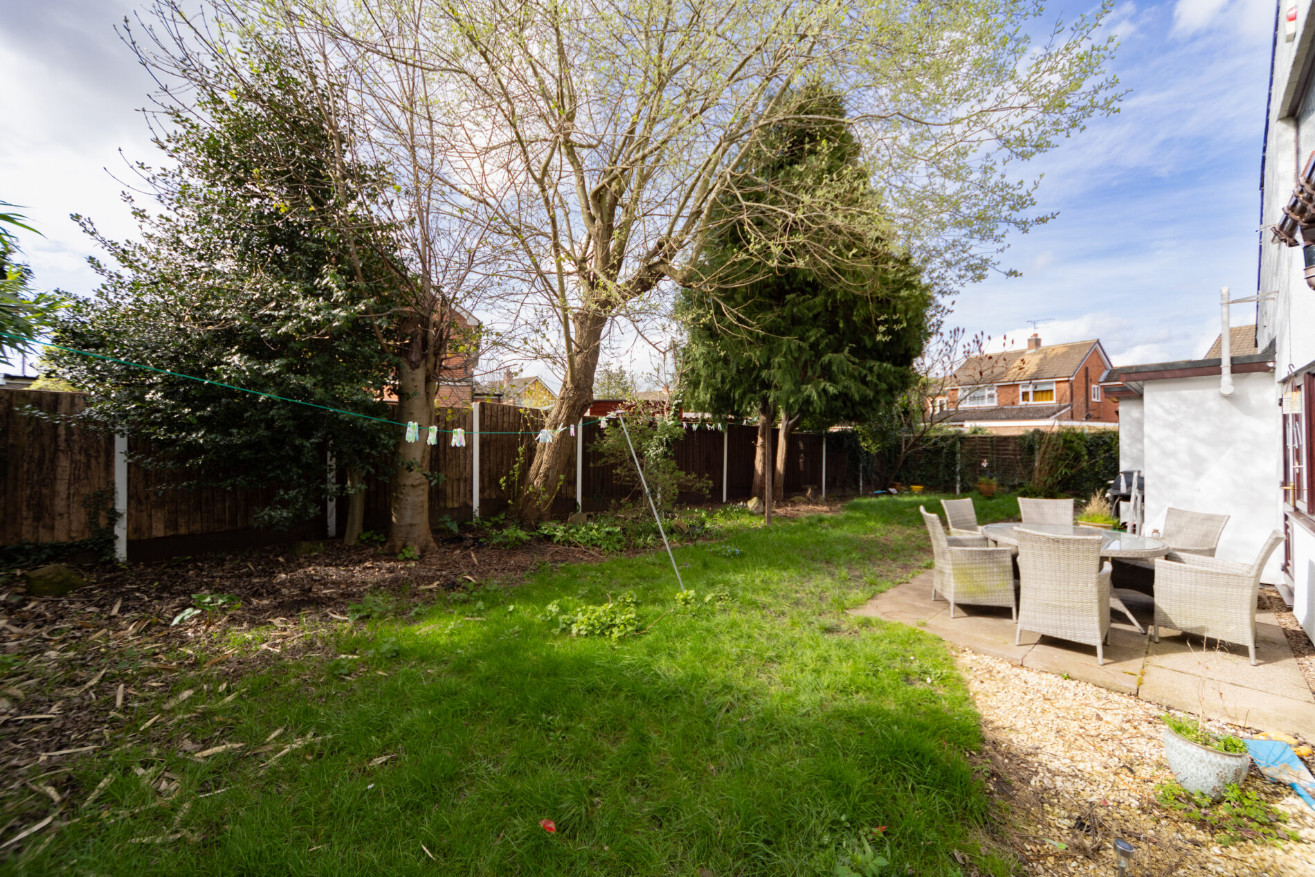The garden space is fully enclosed by fencing with gated accesses to the frontage at either side, mature evergreens and trees to the rear boundary and paved patio at the immediate rear of the house. Outside water tap and useful space behind the garage ideal for a garden storage shed.