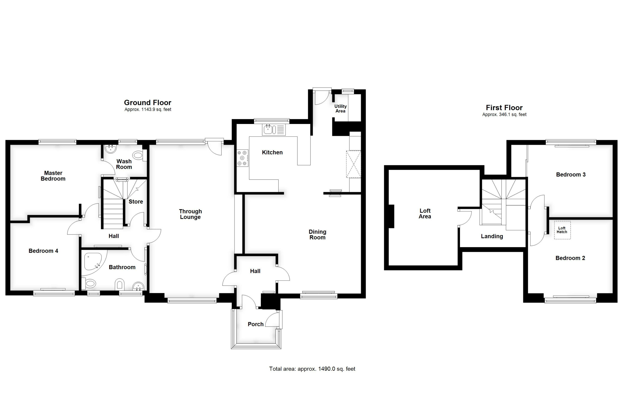 max. With balustrade surrounding the stairwell, ceiling light point, doors to bedrooms two and three (in size order) and additional door to easily accessible loft space.
