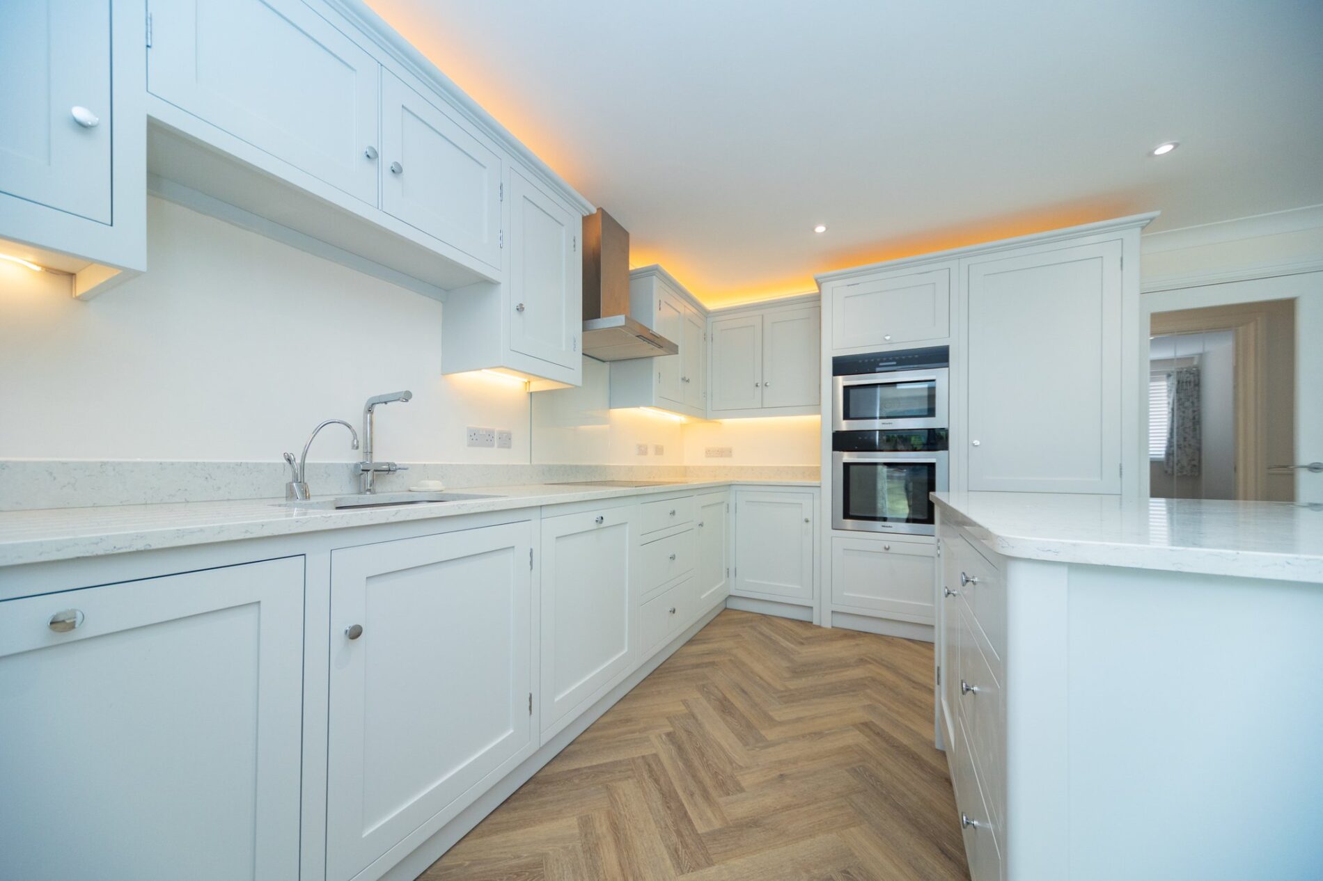 5.09m x 3.77m (16' 8" x 12' 4") The kitchen beautifully fitted with a range of quality 'in-frame' units with inbuilt appliances by Meile to include dishwasher, dual oven and hob. The is plentiful storage, ceiling and worktop lighting, integrated refuse/recycling bins, island with breakfast bar and light quartz worktops with undercut sink and cut-in drainer grooves.