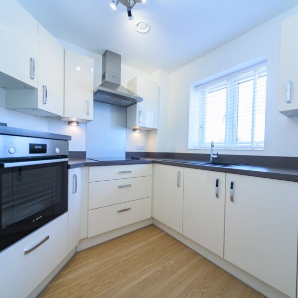 Situated within an immaculately maintained, gated complex for the over 55's, this brand new one-bedroom flat offers an excellent standard of living amongst a friendly community. Offering spacious accommodation to include entrance hall, lounge/diner, fitted kitchen, bedroom with walk in wardrobe and shower room plus utility room. Communal landscaped gardens and allocated parking space.