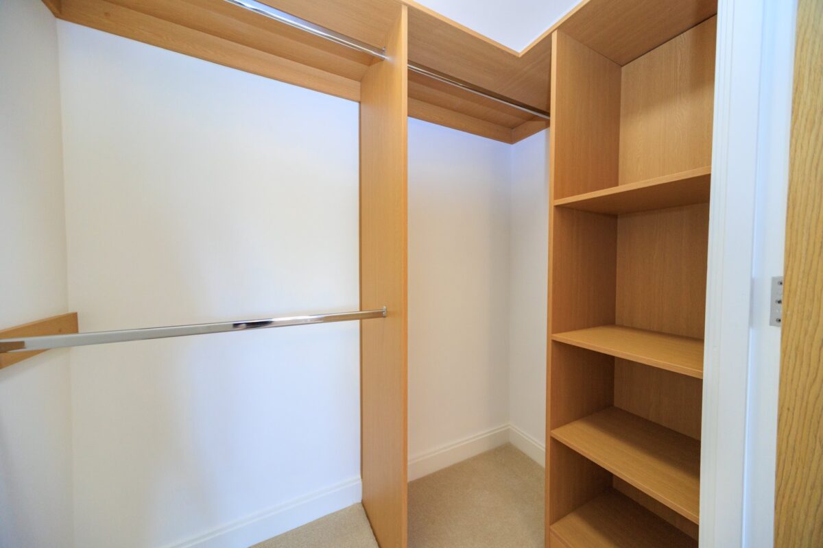 1.87m x 1.05m (6' 2" x 3' 5") With fitted shelving, single and double height hanging rails and additional storage space above plus ceiling light point.