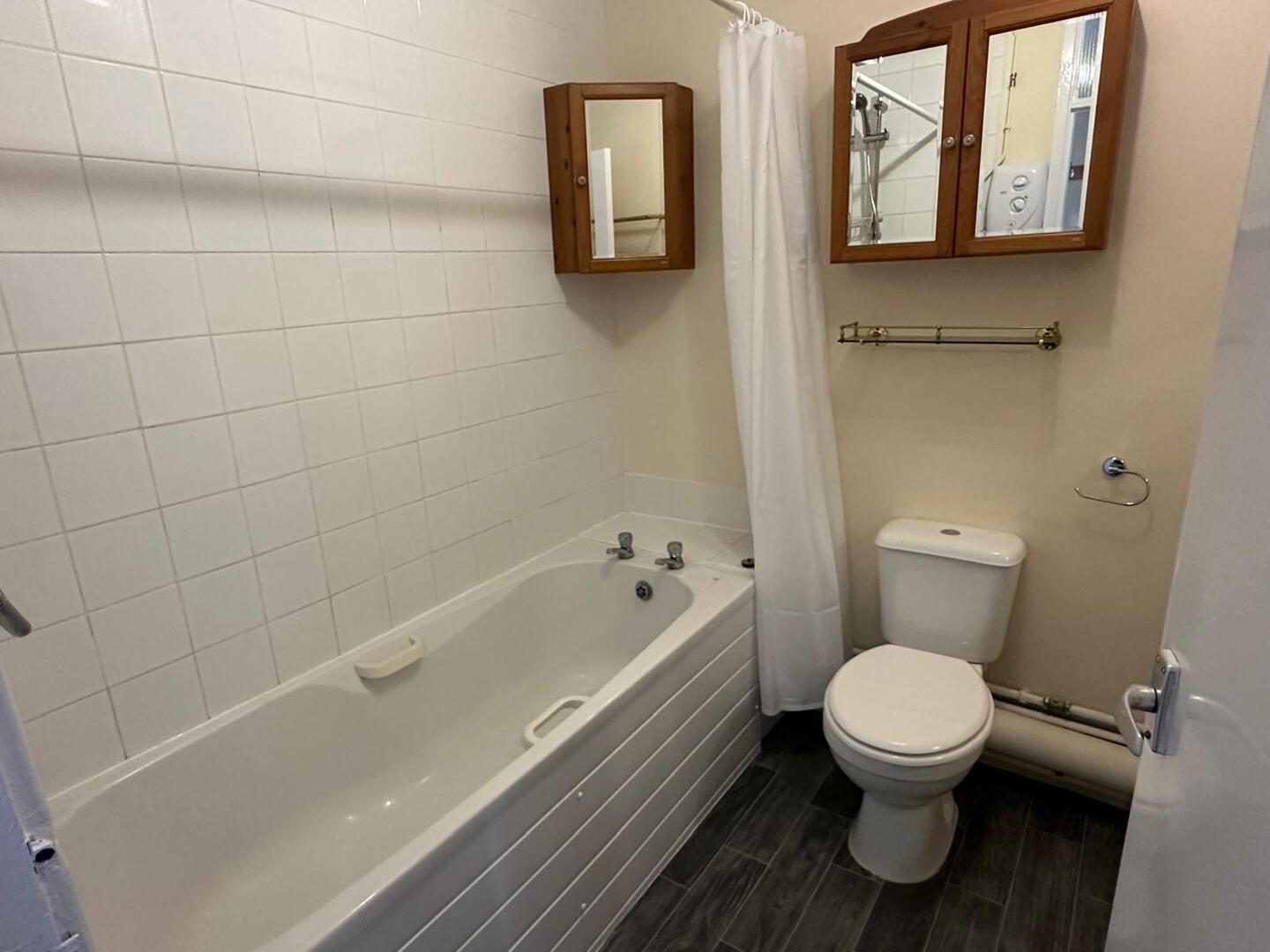 The apartment features two generously sized double bedrooms, each fitted with wardrobes, ensuring ample storage for your belongings. The bathroom is well-appointed, complete with a shower over the bath.