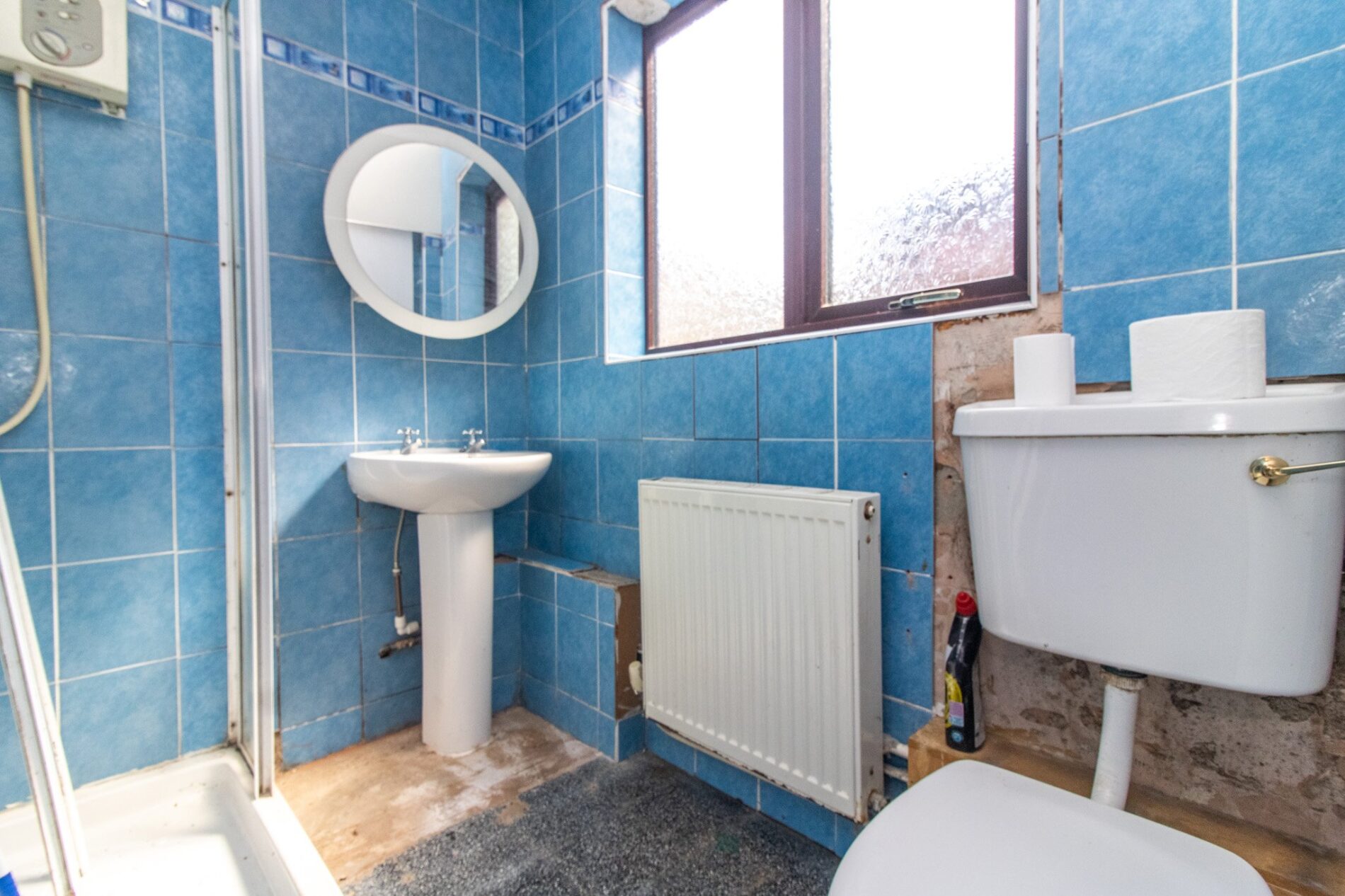 6' 5" x 5' 2" (1.96m x 1.57m) Comprising tiled shower area, pedestal wash hand basin and low level WC, radiator, UPVC sealed double glazed window.