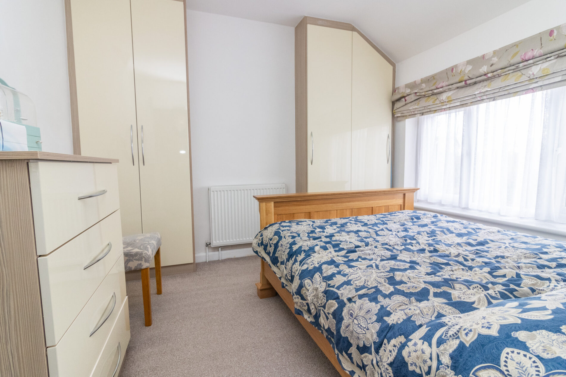 Radiator, UPVC sealed double glazed windows, fitted wardrobes
