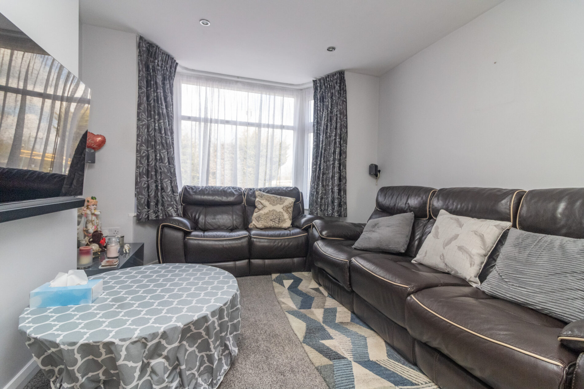 UPVC sealed double glazed bay window, radiator, TV point, radiator, spotlights, sliding doors leading to;