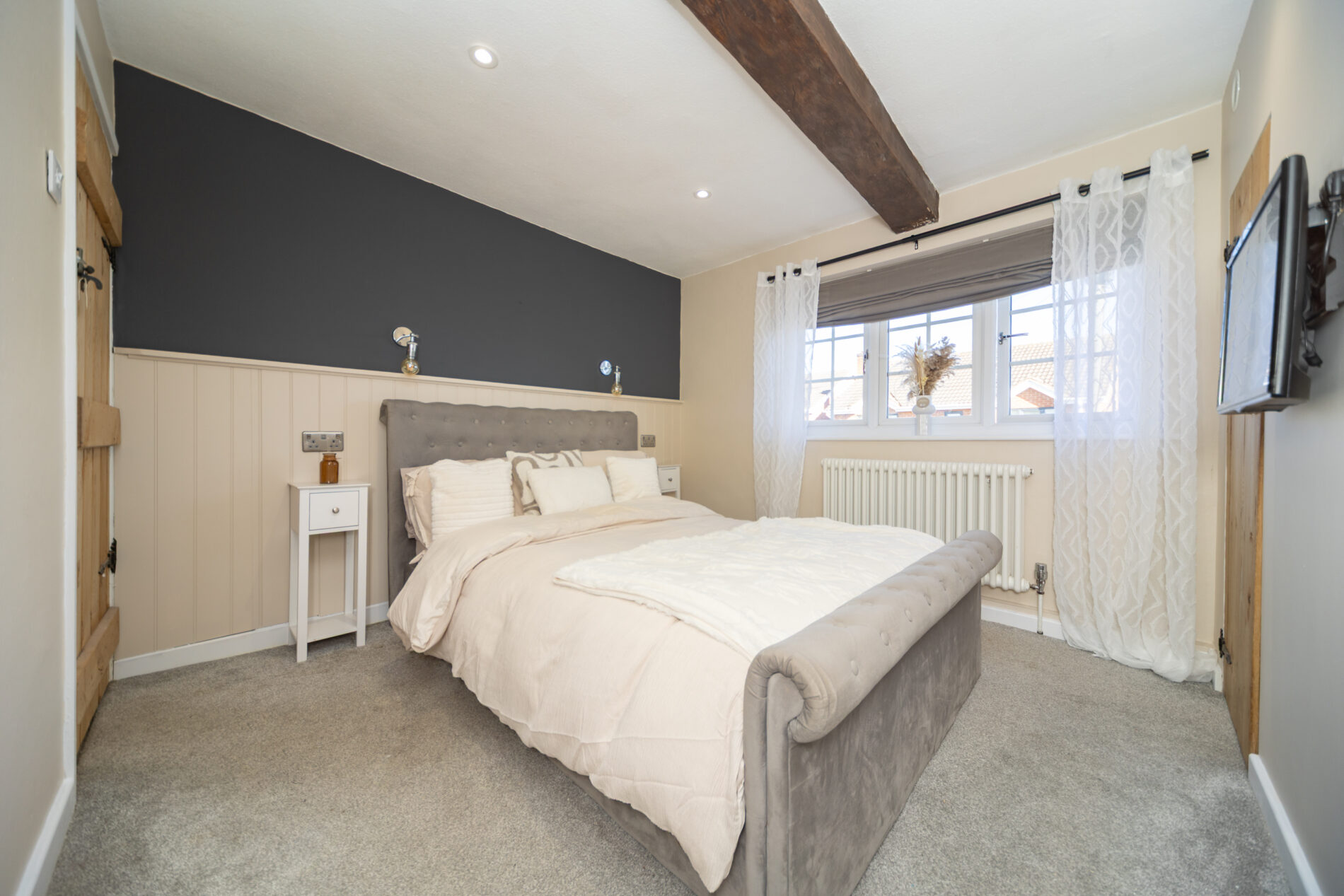 A double room situated to the front elevation with ceiling beam, built in wardrobe/storage and double glazed window to the front elevation.