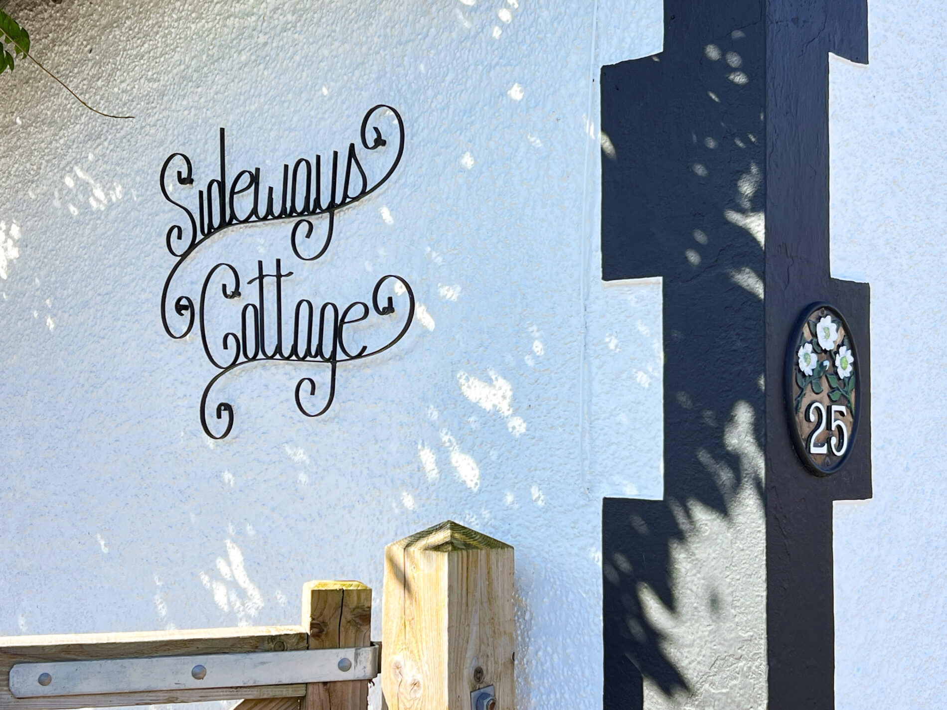 With attractive re-fitted in frame units and for storage, quartz worktops, space for range cooker, Belfast sink, double glazed window, ceiling beams, tiled floor, electric heater, cast iron wood burning stove to a fireplace surround, open backed staircase to the first floor and latch/brace door leading sideways to: