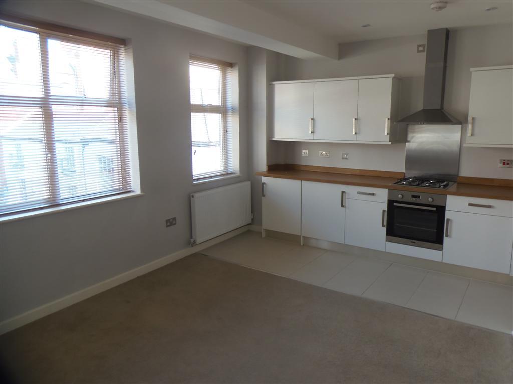 A one bedroom second floor apartment conversion with gas central heating.The accommodation comprises of open plan lounge/dining area and kitchen with range of white units and contrasting Oak block effect worktops, built in fridge freezer, stainless electric oven, gas hob, extractor fan and a washing machine. There is a double bedroom with a cupboard and a bathroom having a bath with fully tiled surround and a mains shower over, fitted mirror and white sanitary ware.