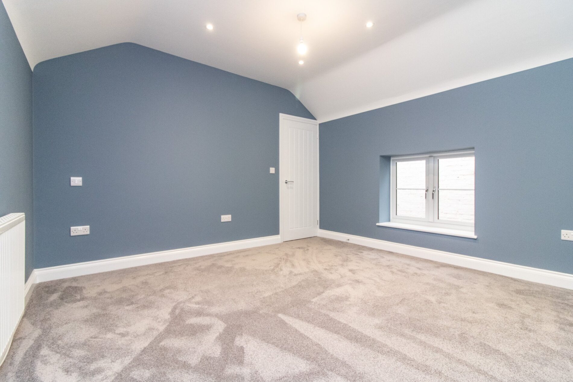 10' 7" x 8' 11" (3.23m x 2.72m) UPVC tall sealed double glazed picture window overlooking rear garden, radiator, spotlights.