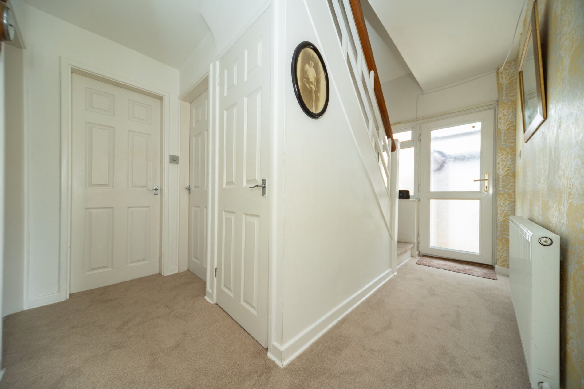 3.69m x 2.72m (12' 1" x 8' 11" overall) With Upvc window and door to the side elevation, ceiling light, radiator and useful understairs store. Doors lead to two bedrooms, the lounge, shower room and the kitchen. Staircase with half landing rises to the first floor accommodation.