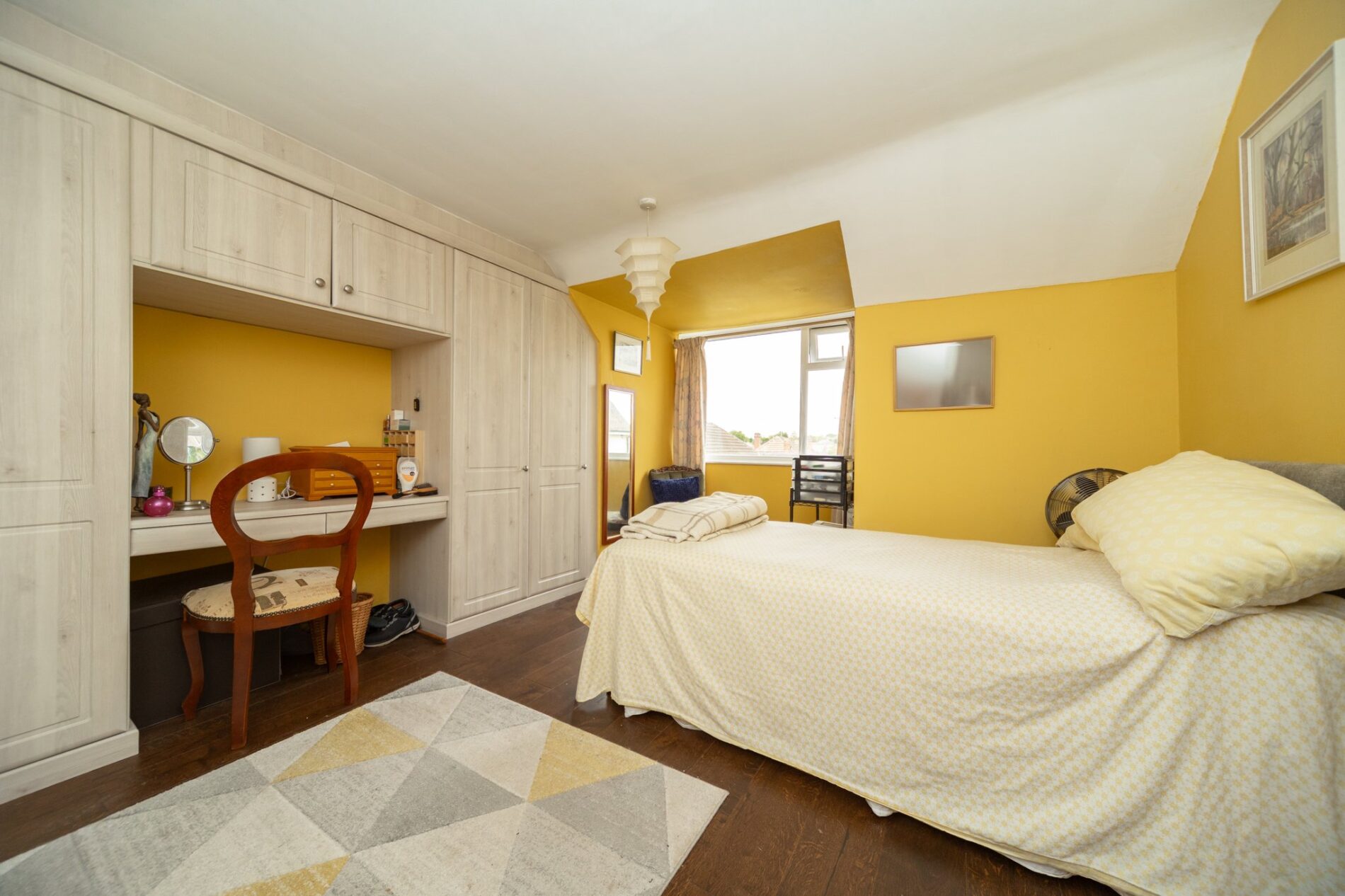 4.63m x 3.61m (15' 2" x 11' 10" overall) With fitted wardrobes and central vanity space to the side wall, radiator, ceiling lighting and a bay with Upvc window to the rear elevation.