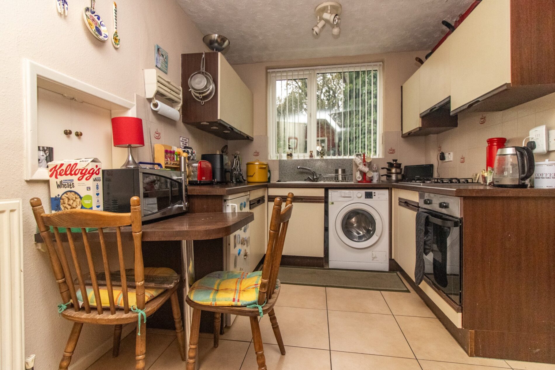 12' 6" x 8' 1" (3.81m x 2.46m) Comprising sink unit with cupboards under, matching base units with work surfaces over, drawers and cupboards under, complementary wall mounted eye level cupboards, built in oven and four piece gas hob with extractor fan over set in matching hood, tiled splash backs, tiled flooring, UPVC sealed double glazed window.