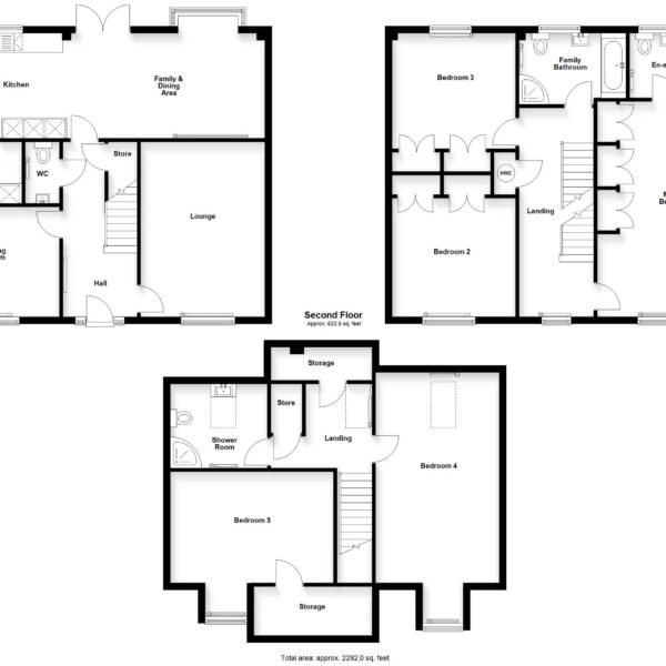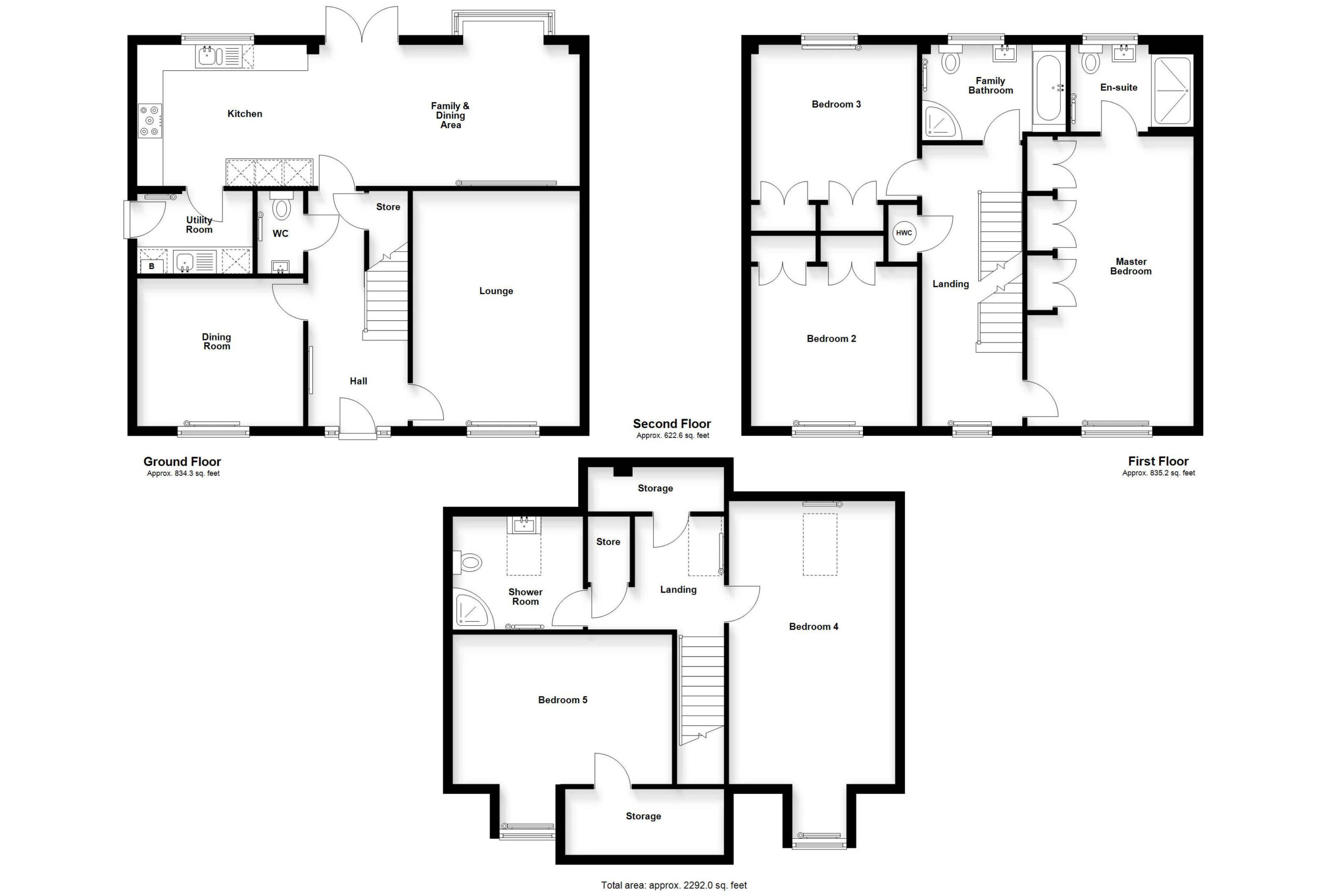 The Lambourn is a generously proportioned family home. On the ground floor you can enjoy a spacious open plan kitchen, dining and family area complete with French doors to the garden, perfect for spending time together. There’s an inviting lounge and separate dining room that could be utilised as a study or home office and also a useful utility room and cloakroom. To the first floor, the large principal bedroom has its own en-suite and a host of built-in wardrobes. Two further double bedrooms also include built-in wardrobes and share a modern family bathroom with bath and separate shower cubicle. The second floor is equally spacious and offers two further spacious double rooms and a shared shower room plus ample storage. Outside are turfed gardens, four-car driveway, EV charger and the separate double garage.