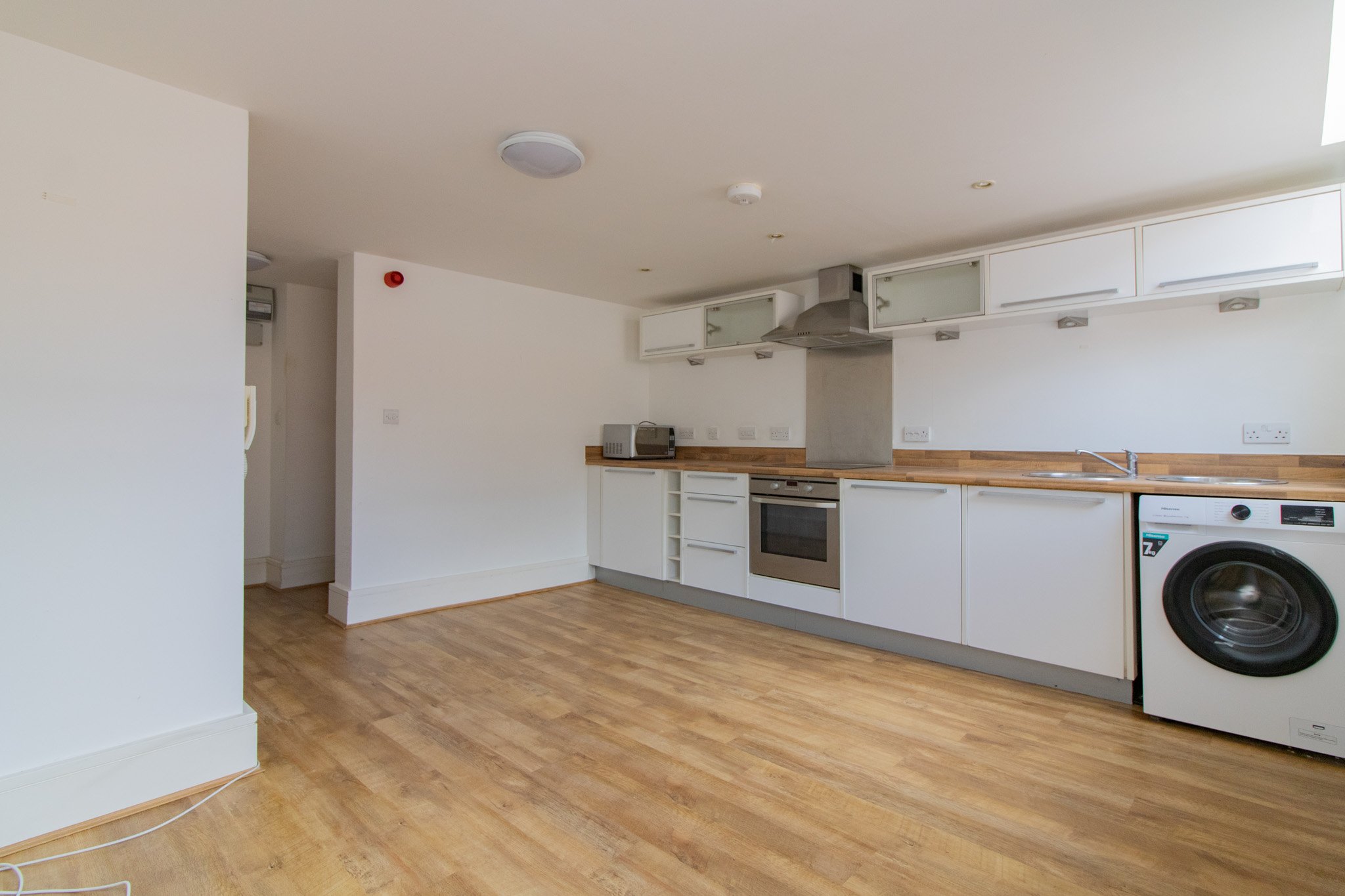 16' 2" x 15' 2" (4.93m x 4.62m) Kitchen area comprising circular bowl and drainer with cupboard under, matching base units with work surfaces over,drawers and cupboards under, wall mounted eye level cupboards, utility space with plumbing for washing machine, built in oven and four piece ceramic hob with extractor fan over set in stainless stel hood with matching splash back, intergrated dishwasher and fridge, sealed double glazed sash window, TV point.